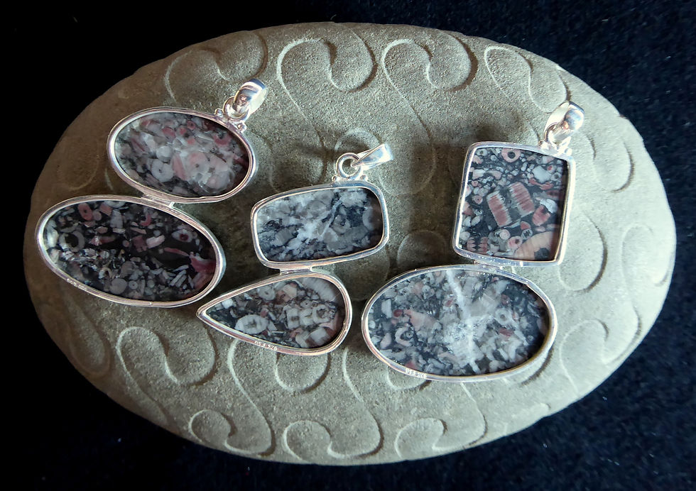 Silver Mounted Pink Crinoid Fossil, Double stone pendants.